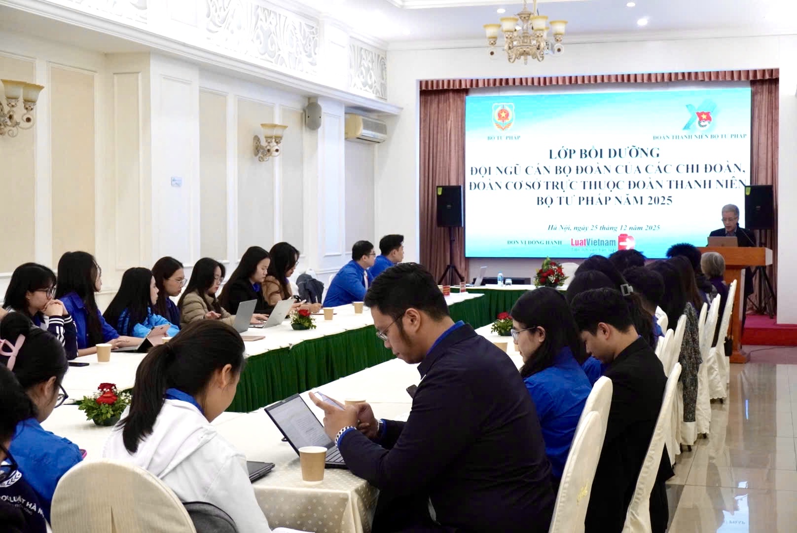 Ngày 25/12, Đoàn Thanh niên Bộ Tư pháp tổ chức Lớp bồi dưỡng đội ngũ cán bộ Đoàn của các Chi đoàn, Đoàn cơ sở trực thuộc Đoàn Thanh niên Bộ Tư pháp năm 2025.